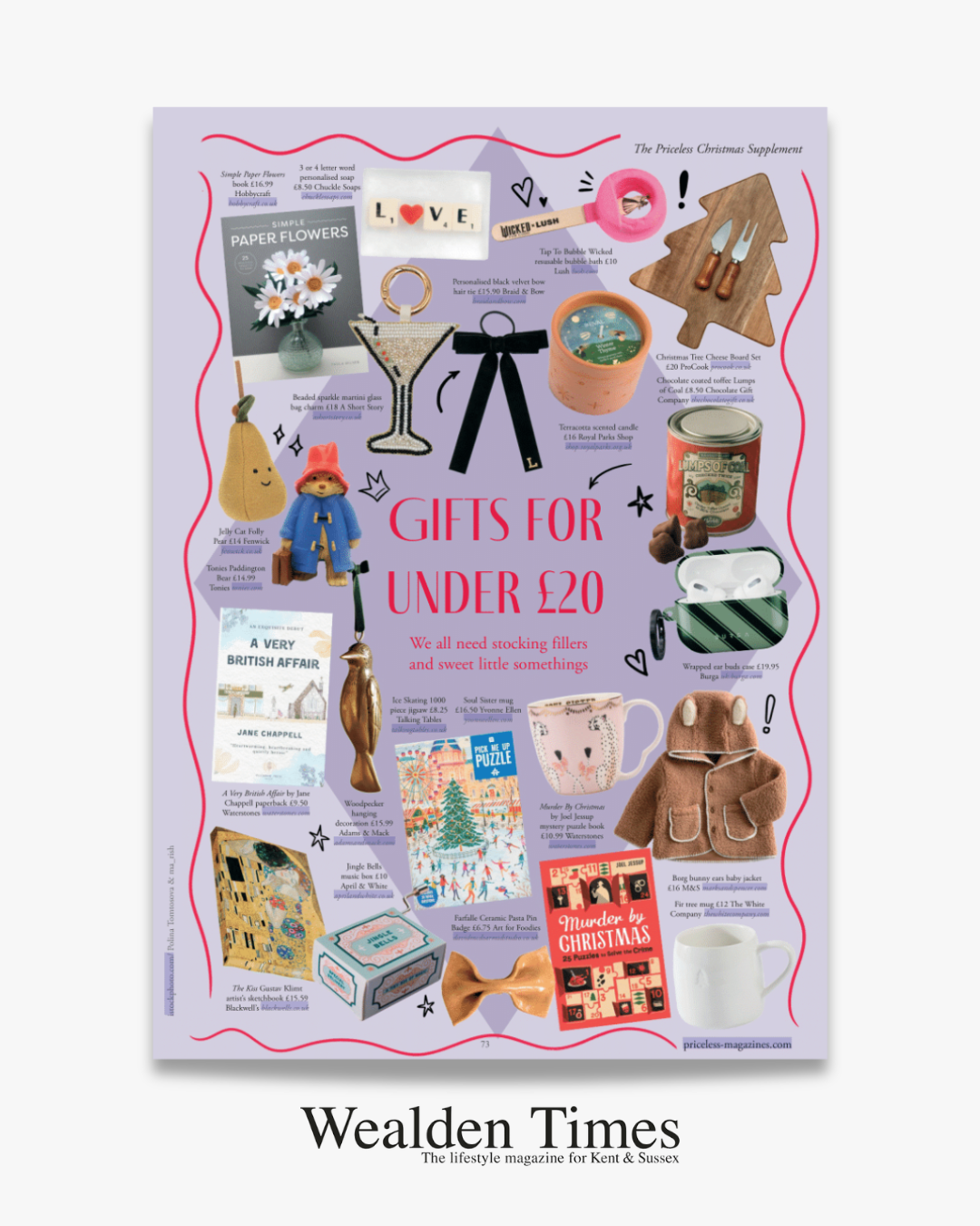 I’m proud to be stocked in over 15 independent gift shops, farm shops and food retailers across the UK and to have been featured in Christmas Gift Guides by The Times, Homes & Interiors Scotland, The Wealdon Times and Surrey Homes in 2025.